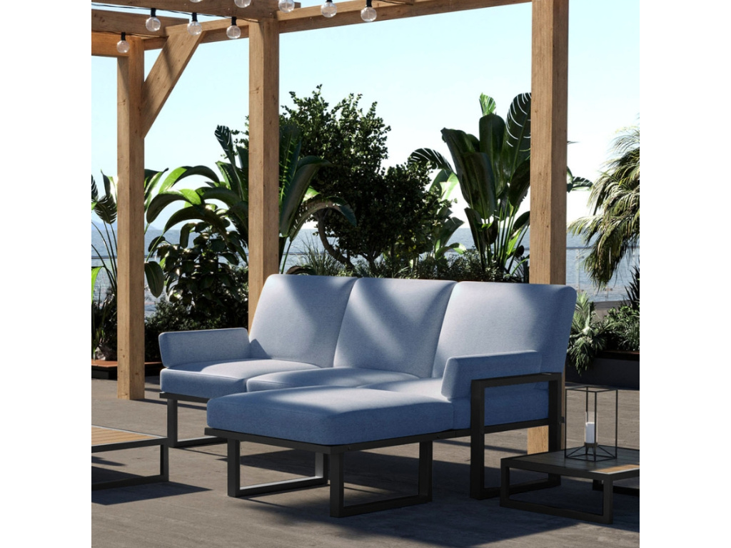 Zažijte nepřekonatelný komfort díky rohové zahradní pohovce MESONICA Soledo z prémiového materiálu. Pohovka v příjemné modré barvě se pyšní pohodlným, vodoodpudivým sedákem, který si zachovává stálobarevnost. V kombinaci s kovovou, lakovanou podnoží odolnou proti korozi působí moderním a svěžím dojmem. Další výhodou čalouněné pohovky je, že se může pochlubit dlouhou životností, dá se snadno čistit, je ohnivzdorná a je dodávána se dvěma dekorativními polštáři. Při sestavování pohovky si navíc můžete vybrat, jestli bude orientována na pravou nebo levou stranu – montážní návod pro obě verze je součástí balení. Zkombinujte pohovku i s dalšími produkty řady Soledo, která je dostupná s bílou nebo antracitovou podnoží a nabízí výběr čalounění z široké palety barev.