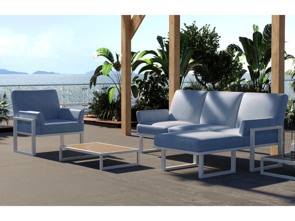 Více infoModrá rohová zahradní pohovka MESONICA Soledo s bílou podnoží 205 cm, levá/pravá