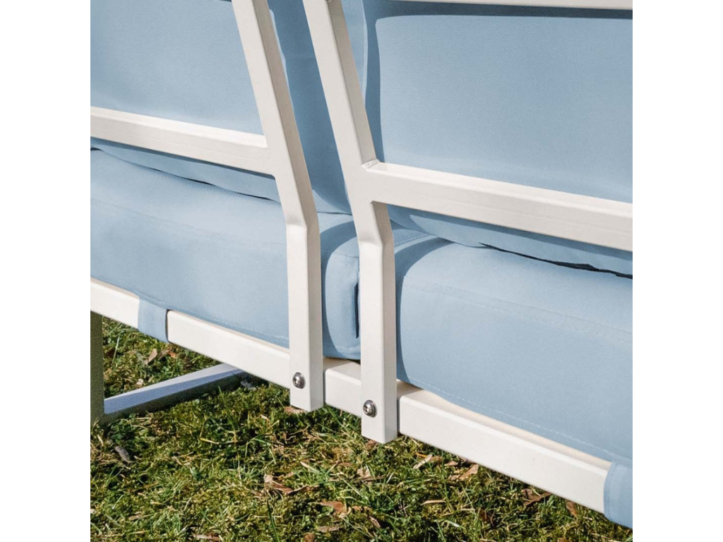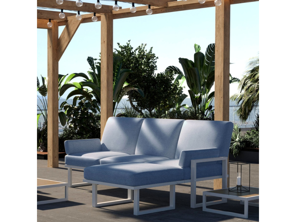 Vyberu siModrá rohová zahradní pohovka MESONICA Soledo s bílou podnoží 205 cm, levá/pravá