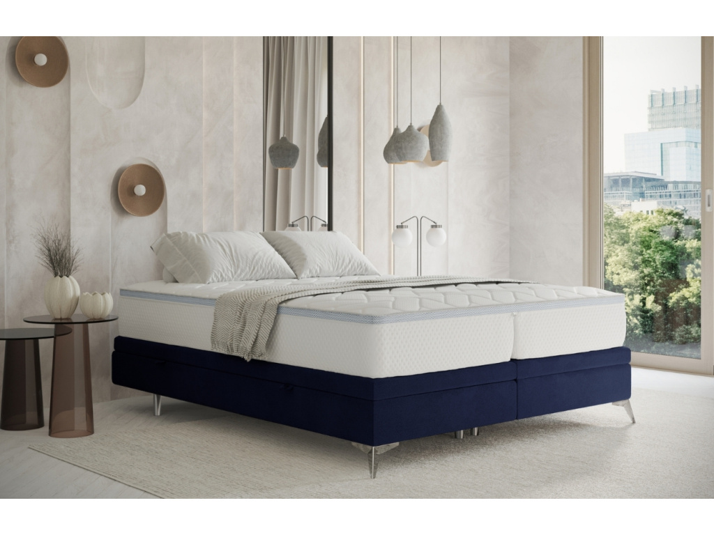 Dvoulůžková postel FIR přinese do vaší ložnice minimalistický design a funkčnost. Jemná sametová látka s lehkým leskem a povrchem Cleanaboo minimalizuje absorpci tekutin, což zjednodušuje její údržbu. Praktické úložné boxy s bočním otevíráním poskytují dostatek prostoru na uložení ložního prádla nebo sezónních věcí. Protiskluzová vrstva na základně zajišťuje, že matrace vždy zůstane na místě. Chromová podnož postele dodává celkovému vzhledu nádech moderní elegance. FIR je skvělá volba pro ty, kdo milující čisté linie a praktický styl, který pomůže zpříjemnit váš domov.