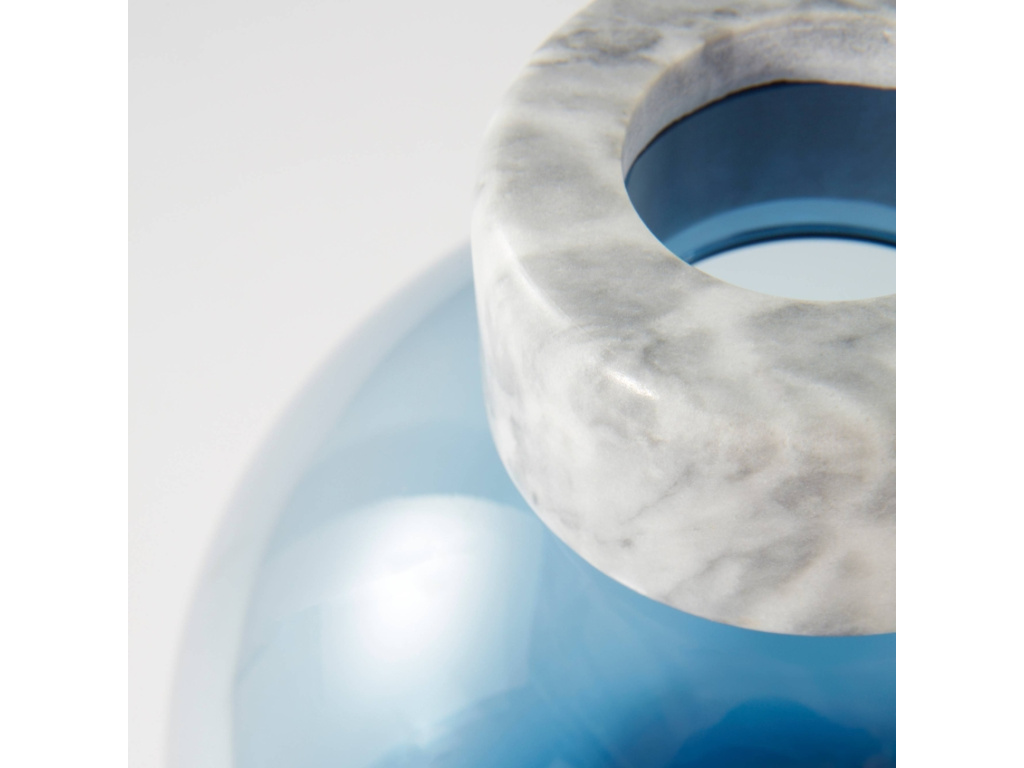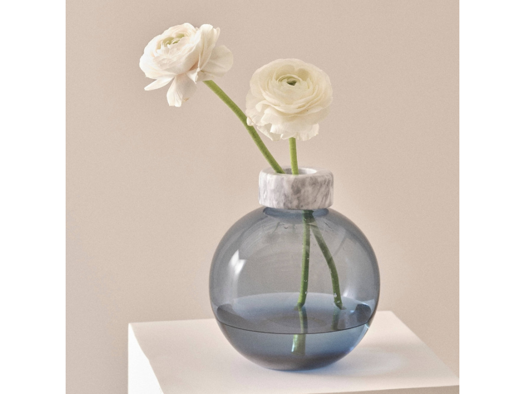 Udělejte si radost novou designovou maličkostí! Skleněná váza HILLEBI v atraktivním modrém odstínu se pyšní zajímavým detailem v podobě mramorové kroužku. Ten usnadňuje aranžování květin, zároveň ho ale můžete kdykoliv snadno sundat. Váza je dostupná také v růžové barvě, můžete je tak v interiéru stylově nakombinovat a dodat tak interiéru dotek hravosti.