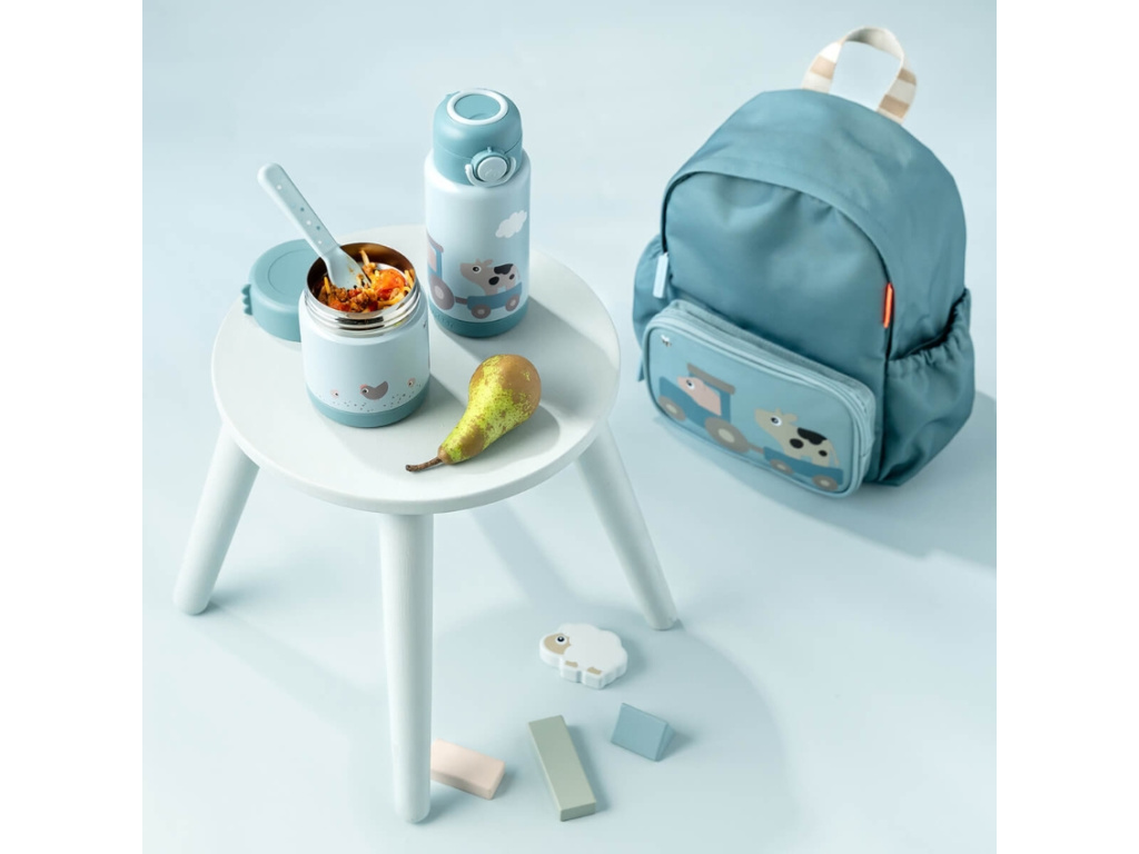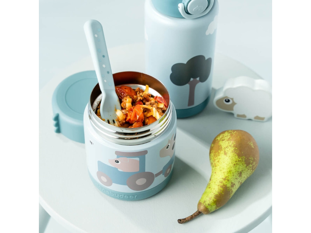 Dětská termonádoba Done by Deer z kolekce Tiny Farm v modrém odstínu je přesně tím kouskem, který se stane nedílnou součástí každé výpravy – ať už míříte do školky, na hřiště nebo na víkendový výlet. Uvnitř se ukrývá dostatek prostoru pro teplou kaši, domácí polévku i osvěžující jogurt s ovocem. Díky kvalitní nerezové oceli a důmyslné izolační vrstvě udrží jídlo teplé nebo studené až po dobu 6 hodin. Víčko je navrženo tak, aby se snadno otevíralo i dětským ručkám, ale zároveň pevně těsnilo a nic se nevylilo. Celý design zdobí oblíbení kamarádi Dotti & Pigee. Termonádoba je nejen krásná, ale také zcela bezpečná – bez BPA a vyrobena z kvalitních, zdravotně nezávadných materiálů.