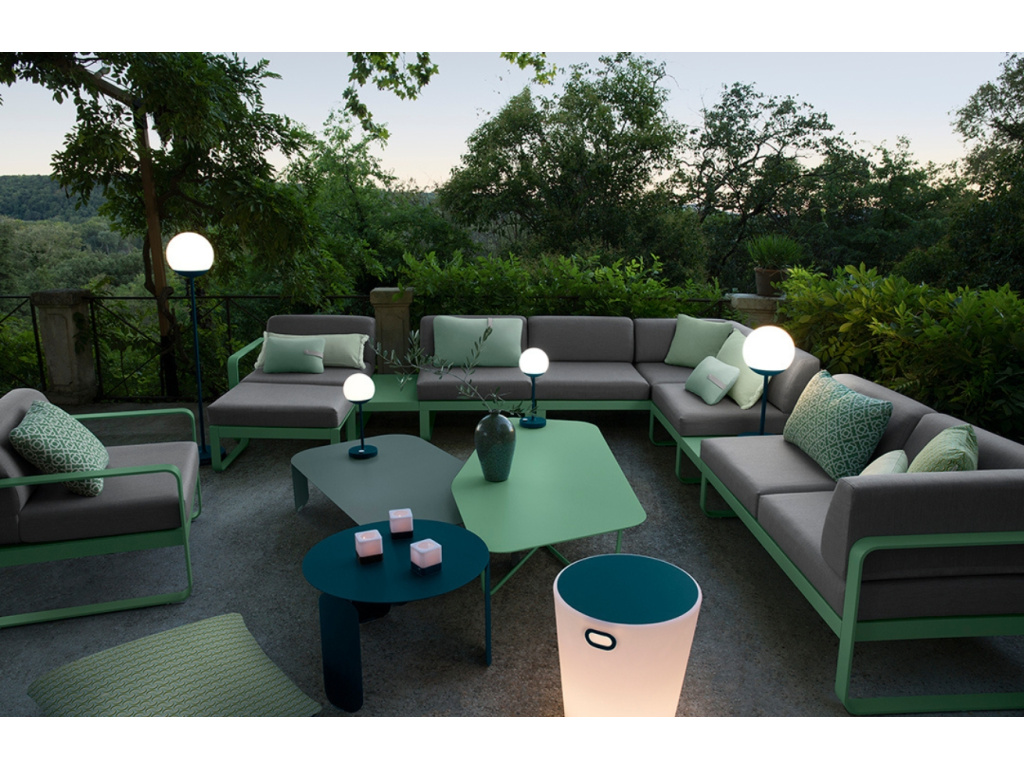 Venkovní LED lampa MOOON! je vhodná jak do interiérů, tak venkovních prostor, a to především díky odolným materiálům. Vybrat si můžete ze dvou různých intenzit osvětlení. Po volbě intenzity osvětlení máte navíc možnost zvolit mezi teplým a studeným odstínem. Lampa se snadno ovládá pomocí kroužku na spodní části stínidla. Možnost propojit lampu s vaším telefonem pomocí bluetooth a aplikace Fermob lighting dělá z lampy MOOON! nadčasové, stylové a funkční osvětlení. Lampa je nabita do 4 hodin pomocí základny připojené do sítě. Díky tomu nemusí být v blízkosti zásuvky a můžete jí kdykoli přenést z interiéru do exteriéru.