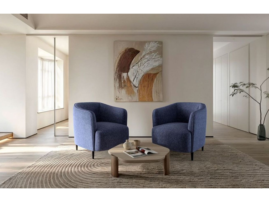 Křeslo Galbe vytváří příjemnou atmosféru, která přímo vybízí k relaxaci a pohodlnému sezení. Jeho minimalistický tvar a zaoblené linie zajišťují nenucený, moderní vzhled. Pevná konstrukce a kvalitní čalounění garantují dlouhou životnost, přičemž černě lakovaná dřevěná podnož dokonale doplňuje celkový design. Křeslo Galbe je ideální jak do útulného čtecího koutku, tak jako výrazný prvek obývacího pokoje, kde se snadno sladí s moderním i tradičním dekorem. K dispozici je také dvoumístná pohovka ze stejné kolekce.