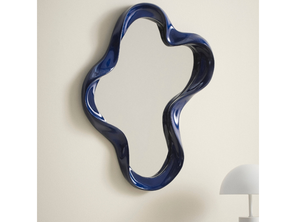 Dopřejte svému interiéru jedinečný designový prvek! Zrcadlo FLOATING zaujme na první pohled svým organickým tvarem a výrazným rámem z pryskyřice, který působí jako mořská vlna v pohybu. Lesklý povrch a elegantní tmavě modrý odstín dodávají zrcadlu nádech moderní sofistikovanosti, díky čemuž se perfektně hodí do minimalistických i eklektických interiérů. Zrcadlo FLOATING nejen že opticky zvětší vybraný prostor, ale také vnese do místnosti prvek hravosti. Umístěte ho do obývacího pokoje, ložnice či předsíně a nechte ho vyniknout.