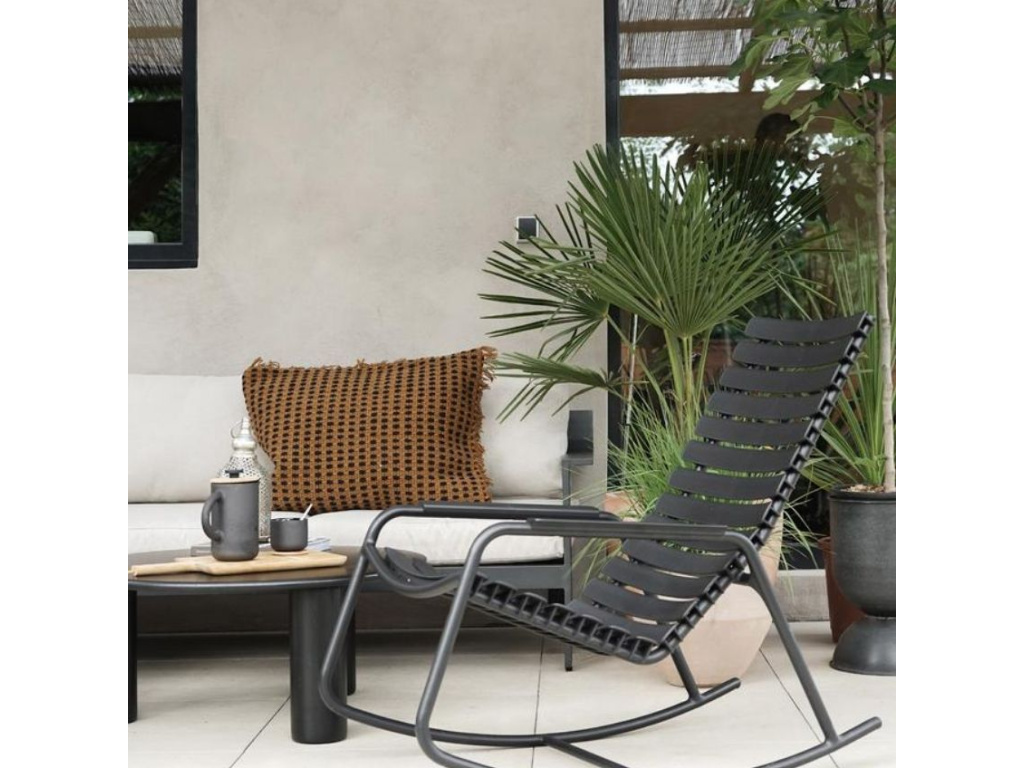 Zahradní houpací křeslo HOUE ReClips zaujme svým moderním vzhledem v severském stylu. Jeho sedák je vyrobený z plastových lamel z recyklovaného plastu a podnož z lakovaného hliníku. Společně vypadají skvěle a vytvářejí unikátní kousek nábytku, který je navíc i díky houpací funkci velice pohodlný. Křeslo můžete umístit na terasu nebo pod pergolu, využití ale najde také v interiéru.