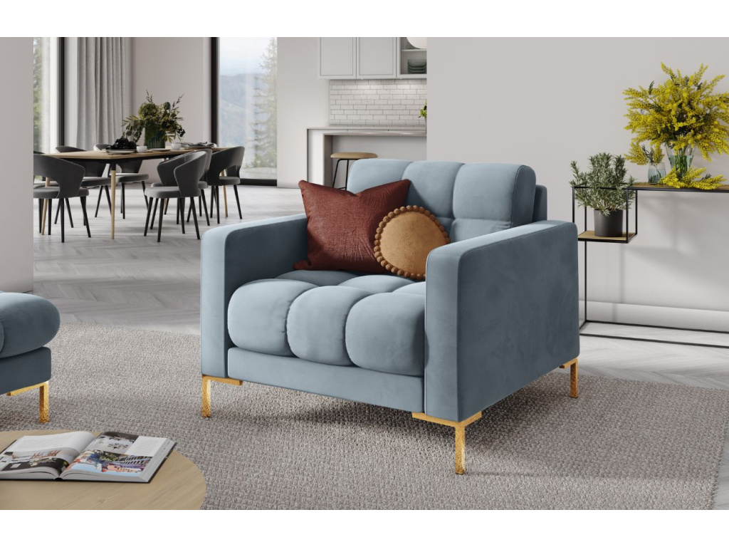 Chcete si krásně vybavit svůj domov? Křeslo Mamaia je pro to ideální volbou. Tento kus nábytku se vyznačuje jednoduchým, ale vkusným tvarem. Čalounění je vyrobeno z tkaniny imitující samet s jemným leskem, které je velmi měkké a hedvábné na dotek. Navíc se značí dobrou odolností proti oděru, díky tomu je vhodné i do komerčních prostor. Kromě estetických kvalit je křeslo také pozoruhodně pohodlné a ergonomické. Celek doplňují elegantní knoflíky na opěradle, které křeslu dodávají noblesu a stylové zakončení. Sezení je podtrženo kovovou, zlatě lakovanou podnoží. Mamaia je v nabídce v řadě barevném provedení. Vyberte si to pravé do vašeho interiéru!