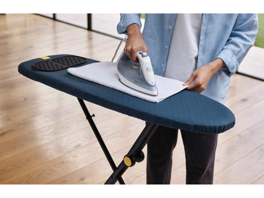 Skládací, lehké, elegantní a maximálně funkční – přesně takové je žehlicí prkno Glide Compact Plus od značky Joseph Joseph. Jeho štíhlý, skladný design šetří místo v domácnosti, aniž by ustupoval praktičnosti – ve složeném stavu zabírá překvapivě málo prostoru a snadno ho uložíte třeba za dveře nebo do skříně. Výšku si pohodlně nastavíte v sedmi polohách, takže ať už žehlíte vestoje nebo vsedě, vždy si najdete ideální pozici. Inovativní potah zvládne i náročné žehlení s parním generátorem – povrch z čisté bavlny je příjemně hladký, zatímco vnitřní vrstvy propouštějí páru, pohlcují vlhkost a zabraňují jejímu nežádoucímu odkapávání na podlahu. Součástí prkna je i praktická silikonová podložka na horkou žehličku, kterou po použití jednoduše zasunete pod desku, a také odolný háček na zavěšení, díky kterému bude Glide Compact Plus vždy po ruce.