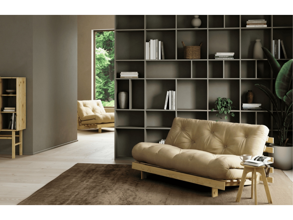 Dvojmístná rozkládací pohovka Roots od dánské značky Karup Design se stane vaším věrným společníkem při sledování vašich oblíbených filmů nebo seriálů. Elegantní a stylovou pohovku proměníte jednoduchým pohybem na praktické lůžko pro dva. Konstrukce z masivního borovicového dřeva s FSC certifikací je doplněna o kvalitní futonovou matraci, která v sobě kombinuje recyklovaná vlákna a 4cm pěnu. Roots pohovka je ideální například pro menší interiéry, kde oceníte další místo na spaní. Vybrat si ji můžete z široké škály barev matrací či další barvě konstrukce. Pohovka je v nabídce také v menším rozměru. Pokud si potrpíte na stylové moderní bydlení s nápadem, s pohovkou Roots neuděláte chybu!