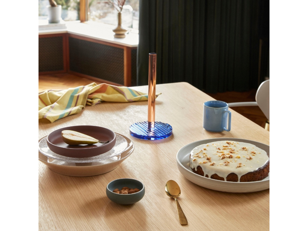 Pořiďte si tohoto praktického pomocníka i do své domácnosti! Držák na role kuchyňských utěrek Kiosk je vyroben z barevného skla a díky svému jedinečnému zpracování ozvláštní každý styl jídelny či kuchyně. Kiosk držák je důkazem toho, že i malý detail může v interiéru hrát velkou roli. V případě potřeby jej omyjte pouze ručně, nedoporučujeme dávat do myčky na nádobí.