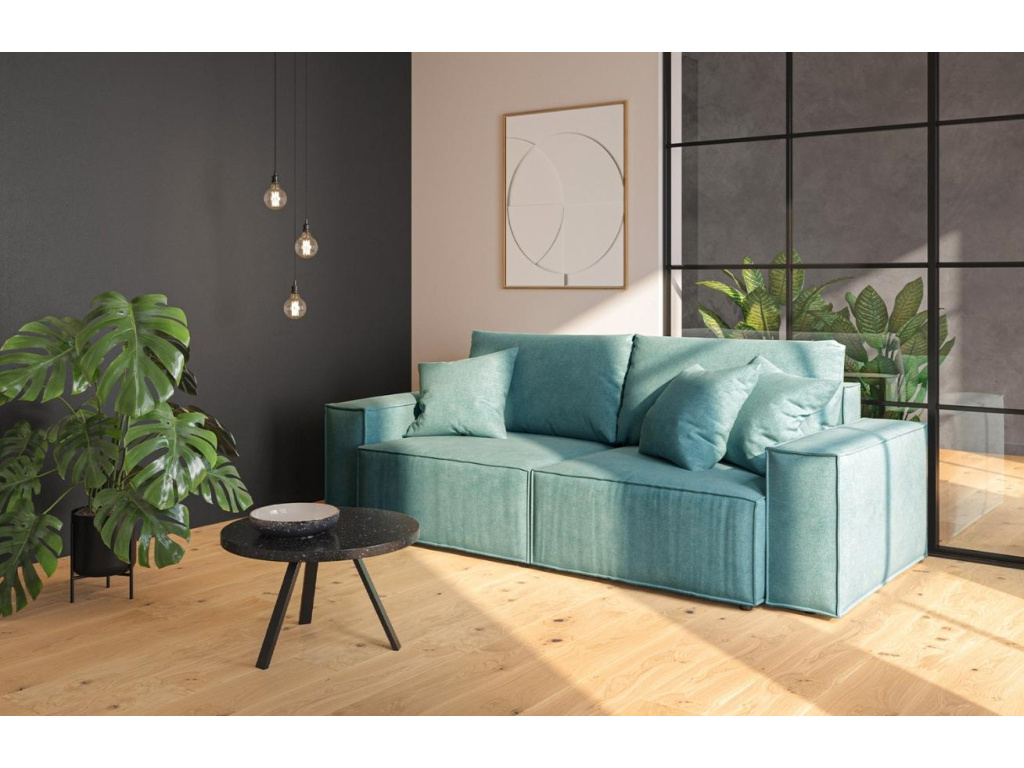 Ghado Melow je třímístná pohovka, která odvážně a čerstvě reinterpretuje moderní koncept. Pohovka Melow nabízí kubické, geometrické tvary, které budí dojem měkkosti a pohodlí. Dobře zvolené prvky a masivní proporce sedáku a opěradla jsou harmonicky vyvážené, aby vytvořily nejen perfektní místo k sezení, ale také příležitostné lůžko - jak pro malé, tak pro velké interiéry. Pohovka je čalouněná příjemnou odolnou látkou v modro zeleném odstínu, která zvyšuje komfort a celkový design pohovky o úroveň výš. Příjemným bonusem jsou elegantní polštářky, které doladí pohovku k dokonalosti. Tato pohovka bude ideální pro průmyslové a moderní obytné prostory, ale také pro komerční prostory.