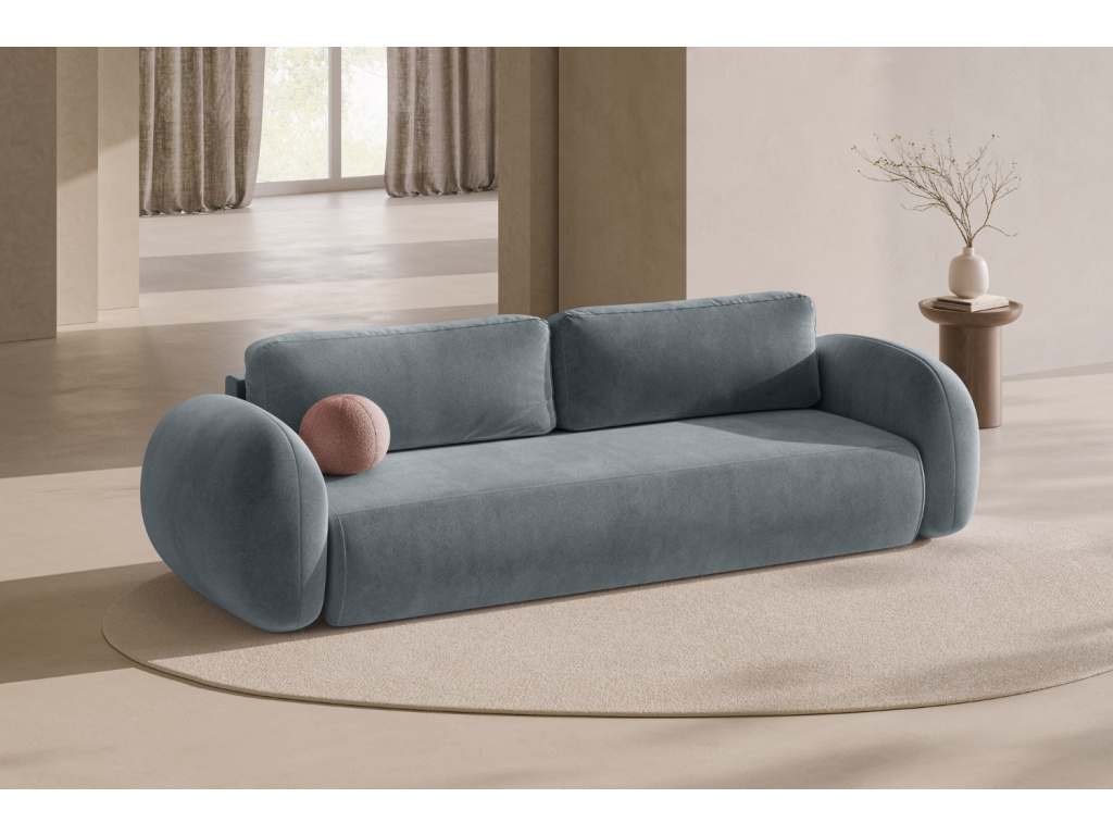 Modrošedá sametová rozkládací pohovka Kora 262 cm