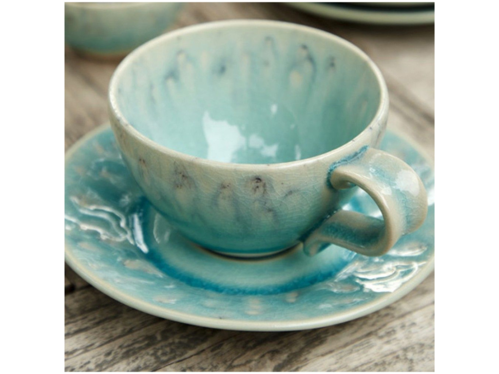 Kameninový šálek s dekorem popraskané glazury vytváří retro vzhled. Modrá barva s černými detaily skvěle ladí do interiéru s námořnickou či plážovou tématikou. Elegantní oblé ouško dává celému kompletu něžný nádech.
