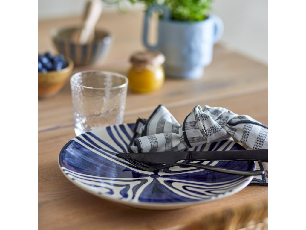 Nádobí ze série Shama od značky Bloomingville je typické svými nápaditými vzory v modrých a oranžových odstínech. Talíř Shama bude jedinečným a elegantním doplňkem vašeho prostírání. Můžete si na něm vychutnat snídani, oběd a samozřejmě i večeři. Bude se dokonale doplňovat s jednobarevným nádobím a nejlépe zazáří v kuchyni, laděné do rustikálního stylu. Zkombinujte s dalšími doplňky ze stejnojmenné kolekce a vytvořte dokonalý soulad na vašem jídelním stole.