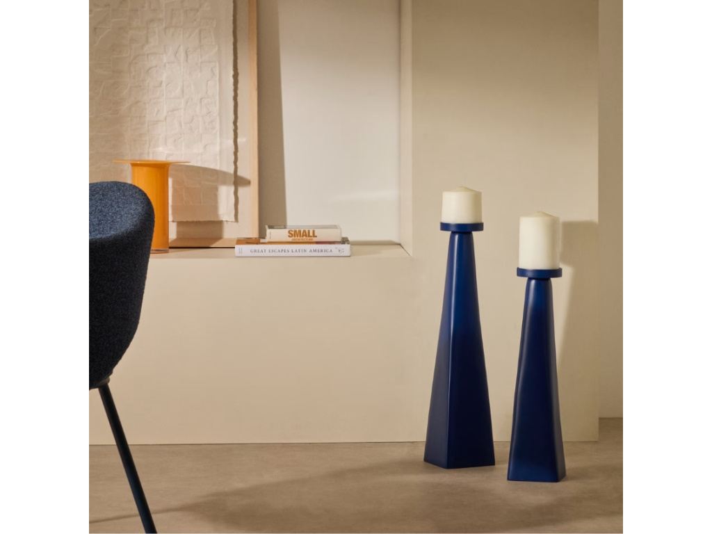 Kovový svícen Kave Home Yuba v hlubokém tmavě modrém odstínu vnese do vašeho interiéru moderní estetiku. Tento designově výrazný doplněk je navržen pro svíčky o průměru 10,5 cm a výšce do 20 cm. Skvěle vynikne v moderních, industriálních nebo minimalistických prostorách, kde podtrhne jejich charakter a dodá místnosti originální šmrnc. Dostupný je ve dvou velikostech – aranžujte buď samostatně, nebo pořiďte oba dva a vytvořte tak dynamickou, kaskádovou kompozici.