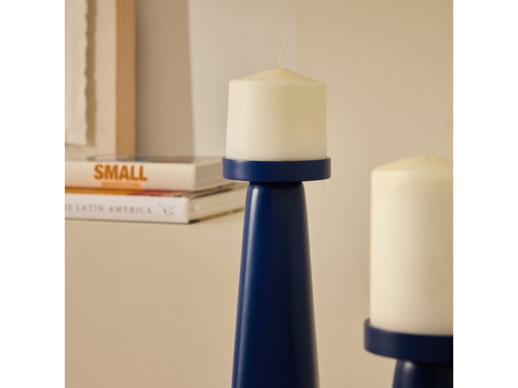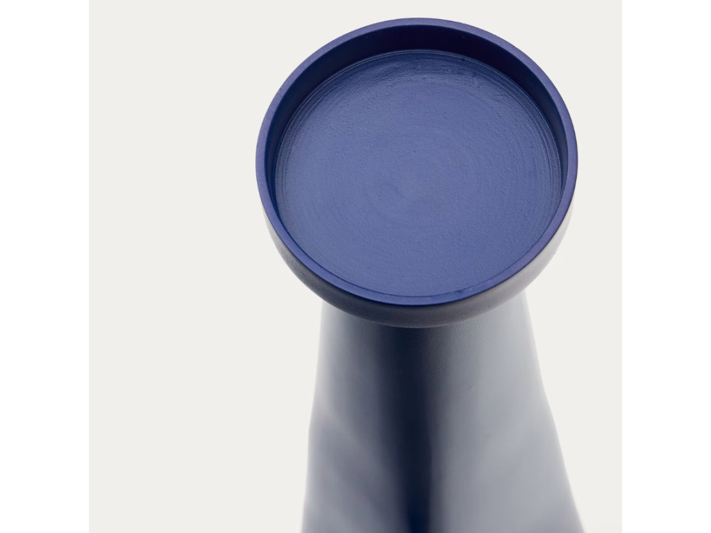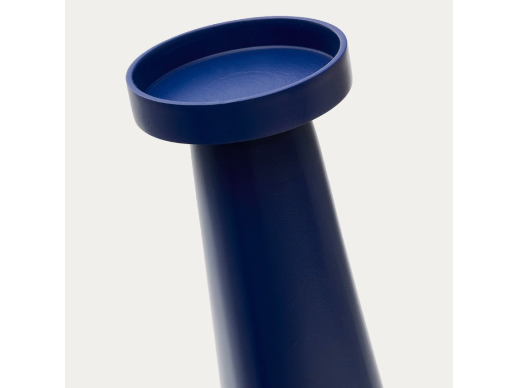 Kovový svícen Kave Home Yuba v hlubokém tmavě modrém odstínu vnese do vašeho interiéru moderní estetiku. Tento designově výrazný doplněk je navržen pro svíčky o průměru 10,5 cm a výšce do 20 cm. Skvěle vynikne v moderních, industriálních nebo minimalistických prostorách, kde podtrhne jejich charakter a dodá místnosti originální šmrnc. Dostupný je ve dvou velikostech – aranžujte buď samostatně, nebo pořiďte oba dva a vytvořte tak dynamickou, kaskádovou kompozici.