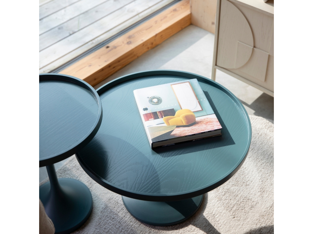 Odkládací stolek Jason je důkazem, že i jednoduchost může zaujmout. Jeho kulatá deska v příjemném modrém tónu v kombinaci s kovovou podnoží vytváří harmonický celek, který do prostoru vnese klid, stabilitu a vizuální lehkost. Díky svému nadčasovému tvaru a decentní barevnosti se snadno sladí s různými styly interiéru – od minimalistického až po přírodně pojaté prostory. Ať už na něj odložíte knihu, kávu nebo designovou vázu, Jason bude vždy působit jako elegantní interiérový doplněk.