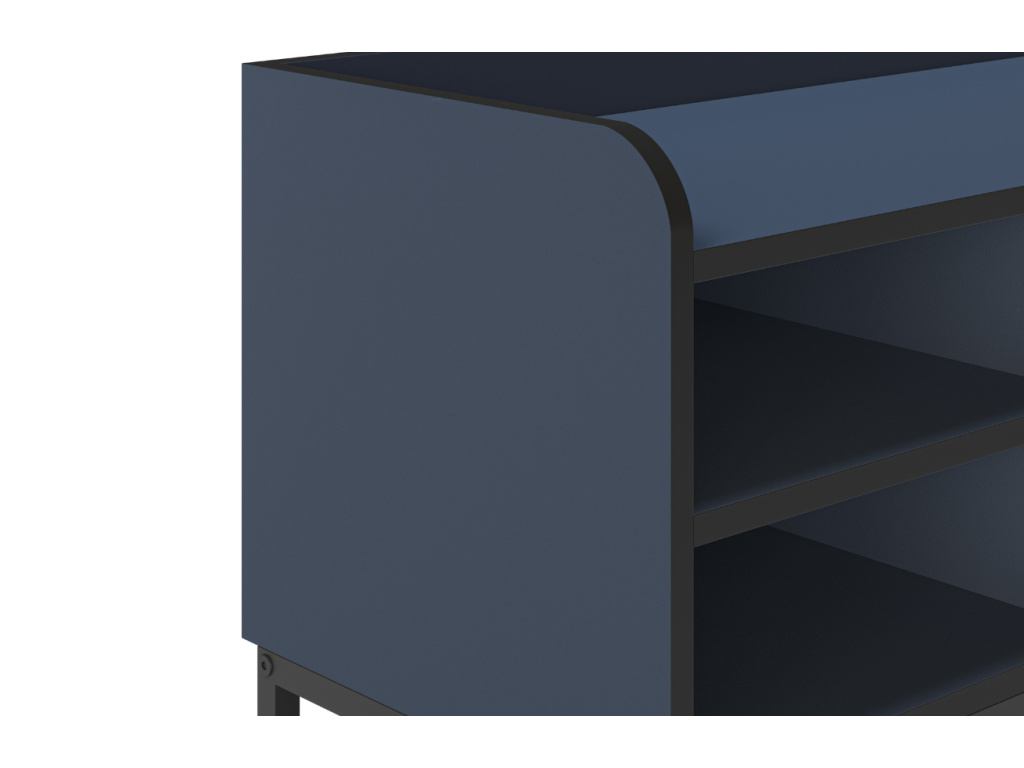 Televizní stolek Adara od značky Marckeric zaujme svým čistým designem s elegantními černými hranami, které dodávají modrému celku výrazný kontrastní akcent. Nabízí praktický úložný prostor tvořený třemi uzavřenými skříňkami a dvěma otevřenými policemi ideálními pro elektroniku, knihy či dekorace. Korpus je vyroben z odolných melaminových desek a podnož tvoří černě lakovaný kov. Stolek skvěle zapadne do moderního, industriálního i minimalistického interiéru. Adara je důkazem, že funkčnost a styl mohou jít ruku v ruce.