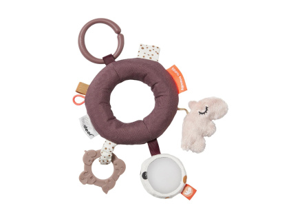 Interaktivní kroužek od značky Done by Deer bude zábavným doplňkem do postýlky každého děťátka. Na kroužku jsou zavěšené různé prvky se zábavnými aktivitami, se kterými můžou dětičky procvičovat jejich hmatové, zrakové a sluchové smysly. V chrastícím zrcátku můžou prozkoumávat svoji tvářičku, kousátko využijí k masírování dásní a měkoučký hrošík Ozzo pomůže s uspáváním. Hračka se díky plastovému kroužku dá snadno připevnit na postýlku, autosedačku i na kočárek.