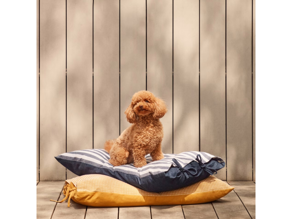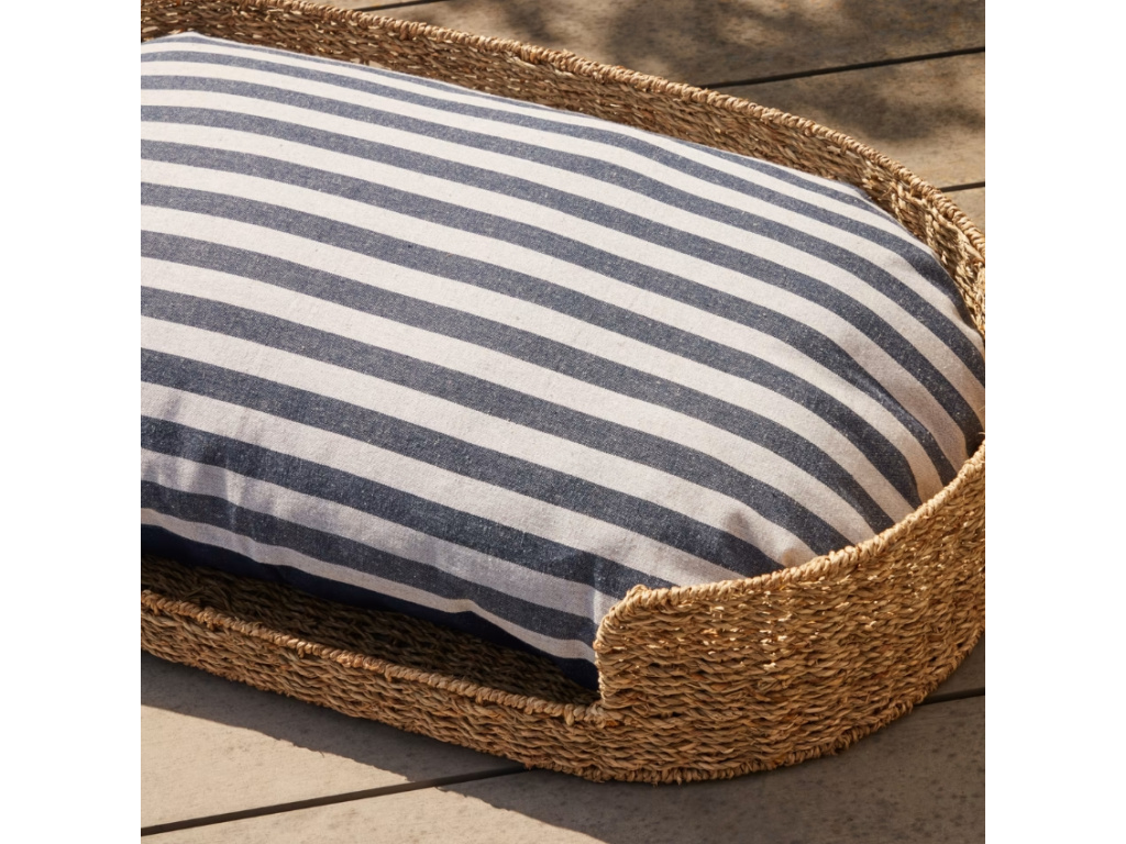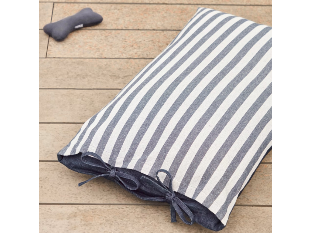 Modrý pruhovaný polštář pro domácí mazlíčky Kave Home Tabby 40 x 60 cm