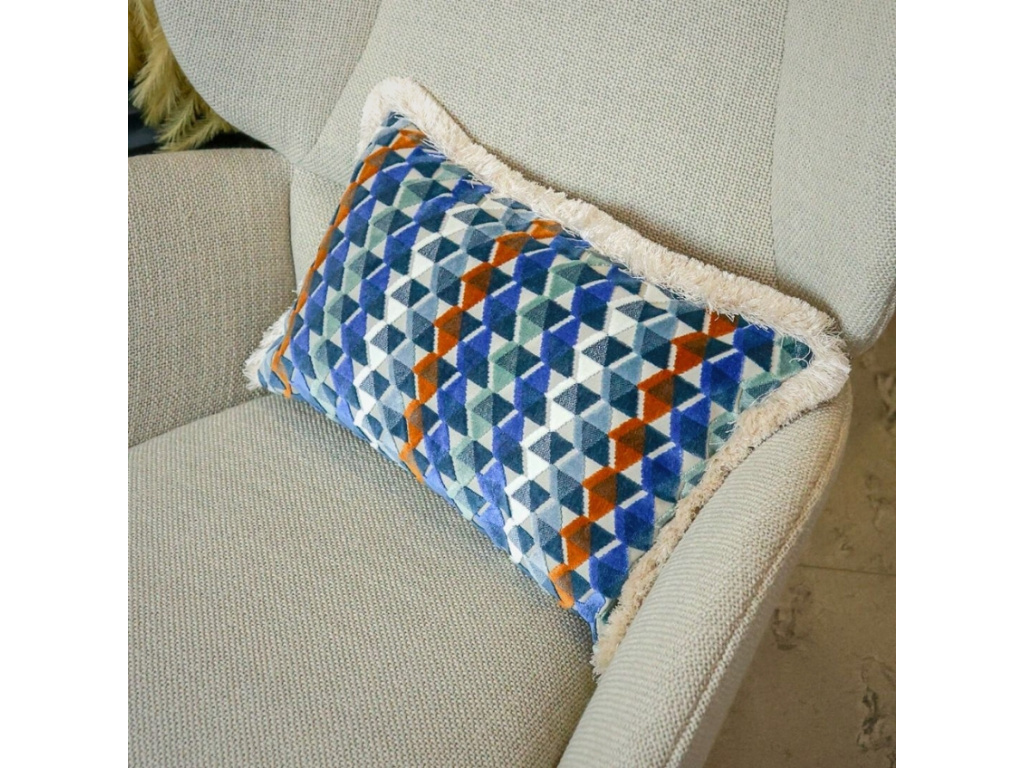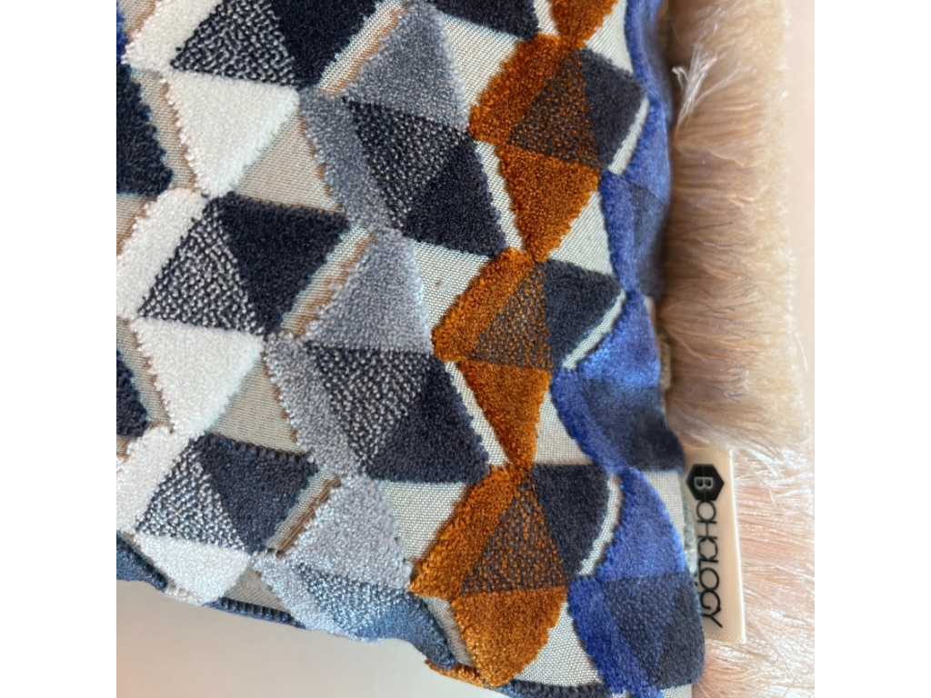 Sametový povlak na polštář Brango designové značky BOHOLOGY je ozvláštněn bohatými třásněmi. Polštáře BOHOLOGY jsou vyrobeny z těch nejkvalitnějších francouzských látek, takže si odpočinek v jejich společnosti opravdu užijete! Brango navíc na první pohled zaujme svým výrazným geometrickým vzorem – bude tedy radost nejen na něm odpočívat, ale i se na něj dívat.