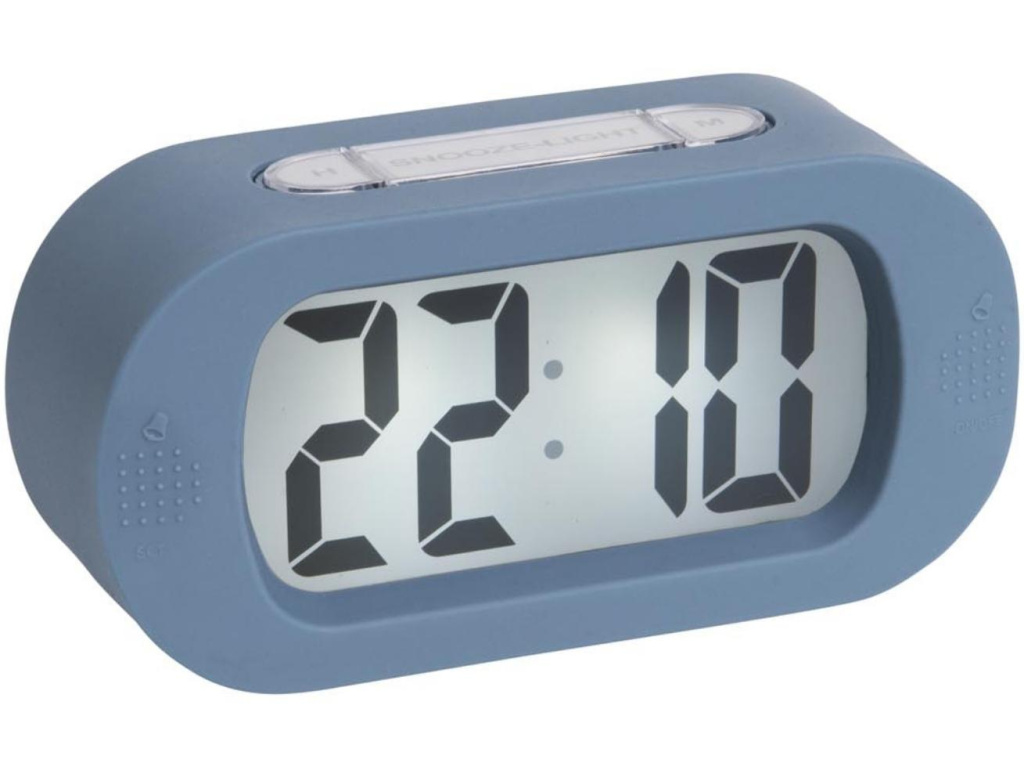 Modrý designový budík Gummy s digitálním ukazatelem času. Jeho provedení ocení milovníci moderního stylu. Ten je v tomto případě zastoupen díky pogumovaným okrajům. Tento materiál zároveň zajišťuje jistou ochranu a naprostou stabilitu na místě.