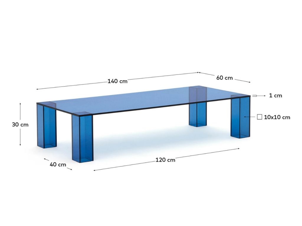 Modrý skleněný konferenční stolek Kave Home Adularia 140 x 60 cm