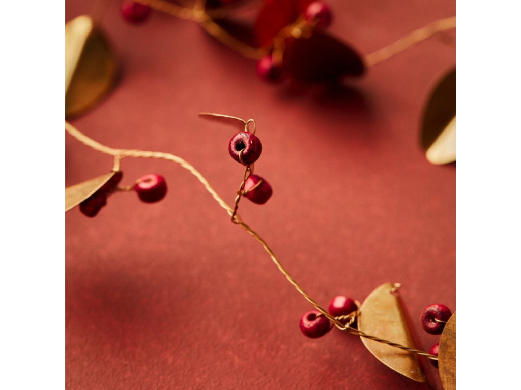Girlanda Leafi od House Doctor je elegantní dekorace, která okamžitě vnese do vašeho domova nádech přírodní krásy. Je vyrobena z mosazi, díky které působí jemně, ale zároveň slavnostně. Můžete ji použít k ozdobení vánočního stolu, pověsit na dveře, zrcadlo či okno, nebo ji zkombinovat s dalšími dekoracemi a vytvořit tak originální sváteční aranžmá. Díky svému minimalistickému a nadčasovému vzhledu se hodí nejen na Vánoce, ale i jako stylový doplněk během celého roku. Leafi je girlanda, která propojuje lehkost přírodních motivů s moderní elegancí a dodá vašemu interiéru útulnou atmosféru.