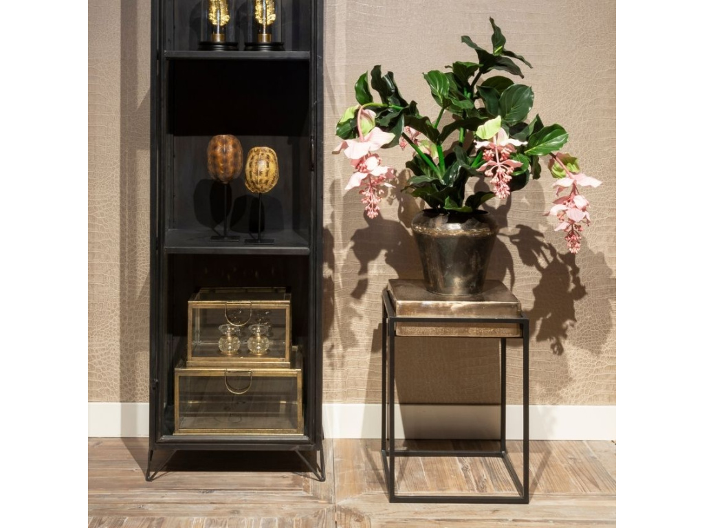 Odkládací stolek Calloway značky Richmond zaujme svým neobyčejným designem. V interiéru skvěle vynikne a stane se jeho nepřehlédnutelnou ozdobou. Stolek je tvořen černou kovovou podnoží, do které je vsazen kovový kvádr mosazné barvy, který plní funkci odkládací desky.