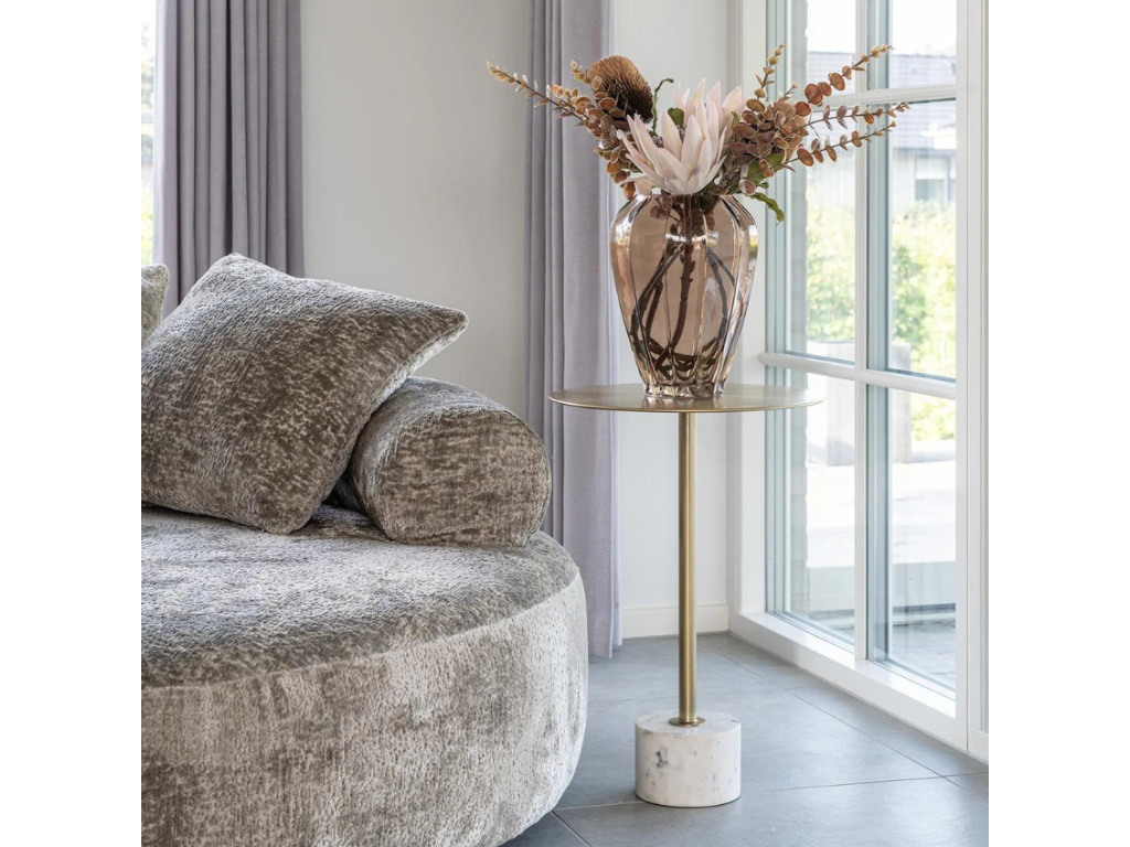 Designový odkládací stolek Leika od značky Nordic Living bude chloubou vašeho interiéru. Při výrobě byly použity prémiové materiály – je tvořen kovovou deskou v mosazné barvě a mramorovou podnoží. Deska o průměru 41 cm poskytuje dostatek místa na ovladač k televizi i šálek čaje a zkrátka na cokoliv, co potřebujete mít po ruce. Pokud jste milovníky boho nebo glamour interiéru, nebo si jen potrpíte na designovky, které žádná návštěva nepřehlédne, může být stolek Leika tou pravou volbou do vašeho interiéru. V nabídce máme několik velikostních provedení.