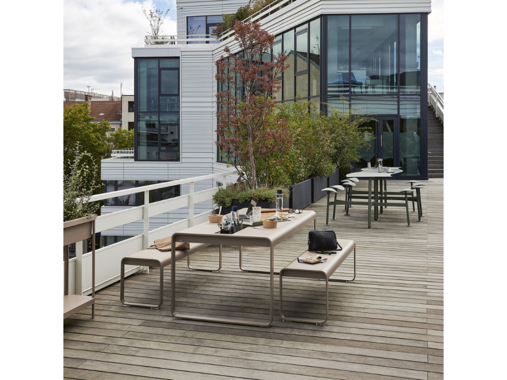 Lavice Bellevie je navržena v duchu čistého a funkčního designu, takže perfektně doplní venkovní sezení v jakémkoliv stylu. Její lehkost a stabilitu zajišťuje hliníková konstrukce, kterou nabízíme v široké nabídce barevných odstínů. Vyrábí se z prvotřídních materiálů a je testována tak, aby splňovala standardy kvality evropských norem (NF EN 581-1 a NF EN 581-2). Exkluzivní systém antikorozní úpravy pro venkovní použití a anti-UV práškový lak (standardizované testy AFNOR) z ní dělá ideálního společníka na zahradu, balkon, ale i do vnitřních prostor. Usadit se na ni mohou až 3 osoby a umístit ji lze samostatně nebo v kombinaci s dalšími produkty od značky Fermob!