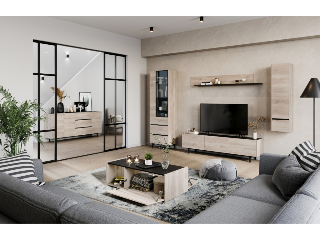 Nástěnná skříňka Cantoria bude stylovou ozdobou každého moderního interiéru. Korpus z dřevotřísky v dekoru dubu je potažen melaminovou pryskyřicí, která skříňce dodává jemný nádech a osobitý vzhled. Minimalistický design komody podtrhuje vrchní deska v černé barvě. Výhodou je možnost zvolit si ze dvou druhů podnože – v balení najdete vyšší i nižší provedení. Sami si tak vyberete, jaká bude vašemu interiéru více slušet. Úložný prostor je prakticky rozčleněn do 4 uzavíratelných polic.