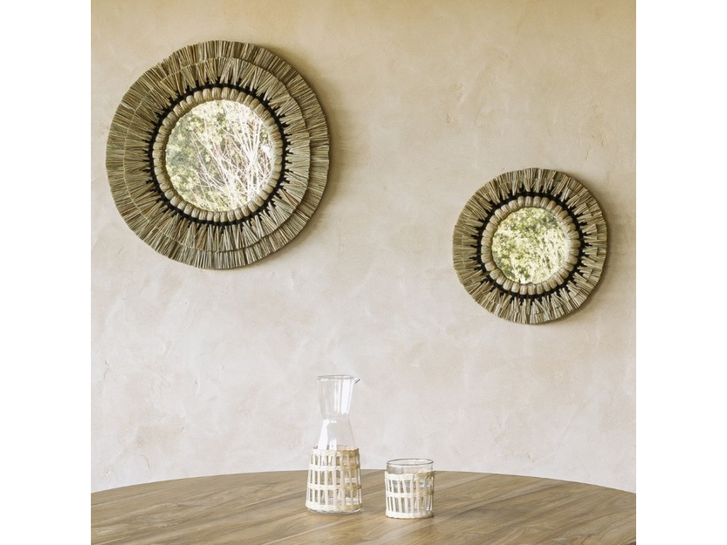 Ozdobte vaši zeď s designovým nástěnným zrcadlem Kave Home Akila. Kulaté zrcadlo Akila je vyrobeno ze skla a především z přírodních vláken trávy Mendong, která zaručuje nejen unikátní design, ale také kvalitu. Máte rádi přírodně laděné interiéry? Zrcadlo Akila od značky Kave Home je pro vás perfektní volbou.