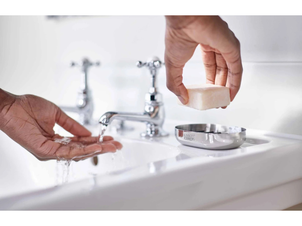 Zbavte se nevzhledných zbytků mýdla a kluzkých okrajů umyvadla. Nerezová mýdlenkaEasyStore Luxe od Joseph Joseph přináší elegantní a funkční řešení, které udrží vaši koupelnu čistou a uspořádanou. Díky odnímatelné horní části s jemnými drážkami zůstává mýdlo vždy suché a čisté – voda jednoduše odteče do spodní misky, kterou lze snadno vylít a umýt. Protiskluzová základna zajistí stabilitu i na hladkých površích a lesklý nerezový design dodá vaší koupelně moderní nádech. Minimalismus, funkčnost a důraz na detail – to je mýdlenka EasyStore luxe.