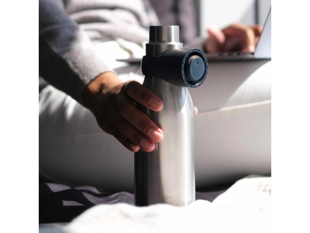 Se stylovou termolahví Loop od Joseph Joseph bude dodržování pitného režimu na jakémkoliv výletě hračka. Vakuově izolovaná láhev je vyrobena z nerezové oceli s měděnou vrstvou a pyšní se dvouplášťovou konstrukcí, která udrží horké nápoje 12 hodin a studené až 24 hodin. Uzávěr láhve je zakončen kulatým úchytem pro pohodlné přenášení a po otevření lze úchyt elegantně nasadit na hrdlo láhve, což umožní snadnější skladování. Chcete-li zachovat co nejdéle požadovanou teplotu nápoje, doporučujeme před naplněním předehřát horkou vodou nebo ochladit studenou vodou.