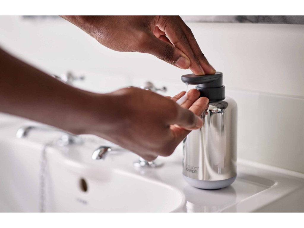 Elegantní, kompaktní a dokonale praktický. Luxe od Joseph Joseph je dávkovač mýdla, který spojuje krásu leštěné nerezové oceli s chytrými detaily pro pohodlné každodenní použití. Snadno stlačitelná pumpička zajistí pohodlné dávkování, průhledné okénko ve spodní části vám vždy napoví, kolik mýdla ještě zbývá, a protiskluzová základna udrží dávkovač pevně na místě. Luxe je ideální volbou pro všechny, kdo chtějí mít v prostoru pořádek, v používání komfort a v koupelně nebo kuchyni styl.