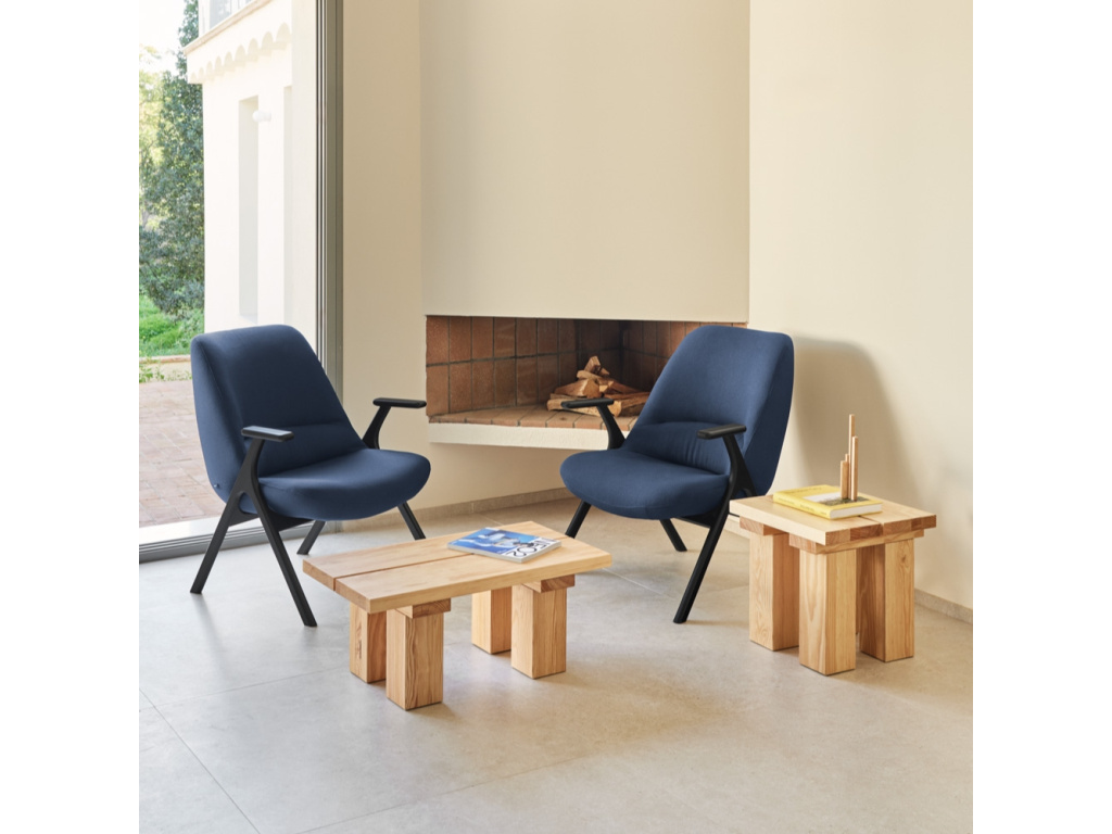 To chciNízké modré křeslo Dins s černou dřevěnou podnoží