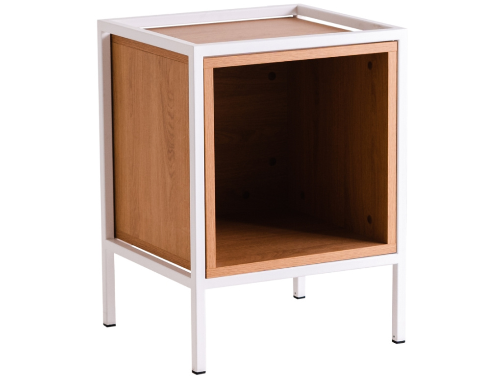 Kolekce modulárních úložných prostor Skipo představuje stylový nábytek, který si jednoduše seskládáte podle vašich představ. Najdete v ní několik velikostí skříněk, které mohou být využity jako knihovny, komody, noční stolky nebo třeba TV stolky. Zkrátka je použijte tam, kde je potřeba! Spojení dubového dekoru a kovového rámu je nadčasové a skvěle zapadne do minimalistických i industriálních prostor. Noční stolek Skipo je vysoký 60 cm a disponuje prostornou otevřenou policí, dostupný je také v černém provedení. Využít ho můžete také jako odkládací stolek k pohovce nebo ke křeslu.