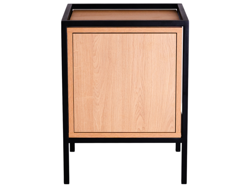 Kolekce modulárních úložných prostor Skipo představuje stylový nábytek, který si jednoduše nakombinujete podle vašich představ. Najdete v ní několik velikostí skříněk, které mohou být využity jako knihovny, komody, noční stolky nebo třeba TV stolky. Zkrátka je použijte tam, kde je potřeba! Spojení dubového dekoru a kovového rámu je nadčasové a skvěle zapadne do minimalistických i industriálních prostor. Noční stolek Skipo je vysoký 60 cm a disponuje jednou uzavřenou policí s dvířky, dostupný je také v černém provedení. Využít ho můžete také jako odkládací stolek k pohovce nebo ke křeslu.