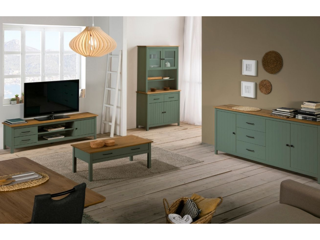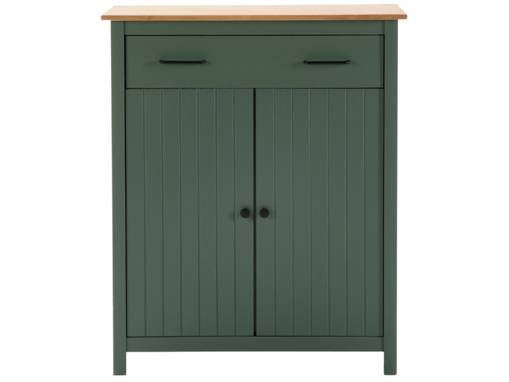 Komoda Miranda od značky Marckeric v olivově zelené barvě vyrobená z masivního borovicového dřeva se stane jedinečným a stylovým doplňkem vašeho moderního, ale i klasického interiéru. Obdélníkový matně lakovaný korpus z masivního dřeva nabízí prostorný úložný prostor díky široké zásuvce a uzavřeným policím s dvířky. Atraktivní kontrast dodává horní deska komody, která je zanechaná v přírodním borovicovém odstínu. Zkombinujte tento kousek také s ostatními produkty řady Miranda, získejte díky tomu dokonalou souhru nábytku ve vašem interiéru.