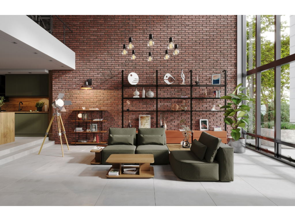 Více infoOlivově zelená čalouněná modulární pohovka Riposo 290 cm se stolky