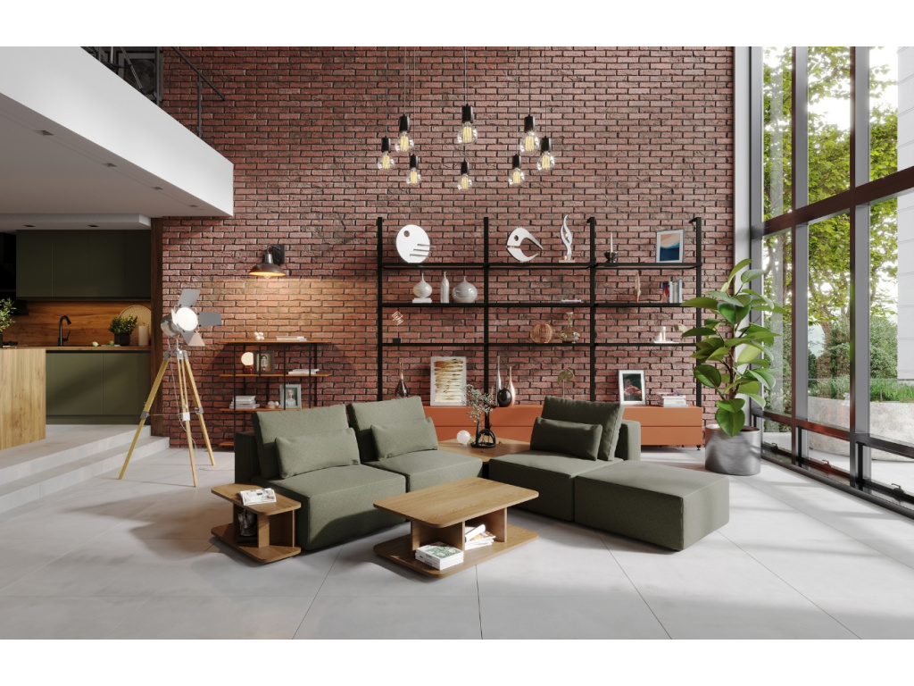 Více infoOlivově zelená čalouněná modulární pohovka Riposo II. 290 cm se stolky