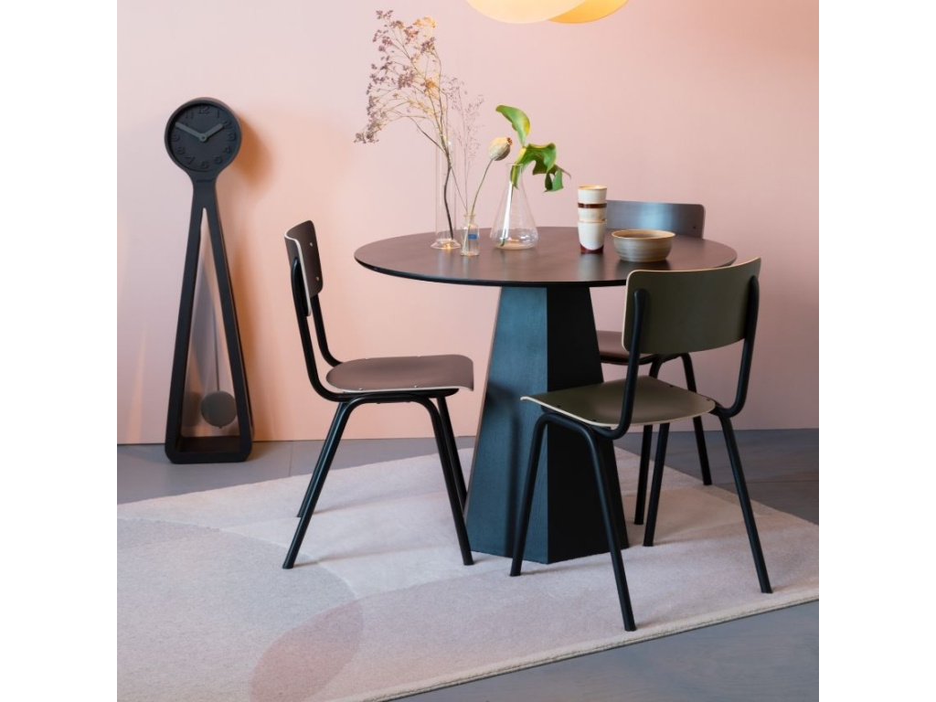 Moderní verze židle ZUIVER BACK TO SCHOOL v matně olivovém provedení. Sedák a opěradlo jsou vyrobeny z překližky pokryté slabým a vysokotlakým laminátem. Stohovatelná židle vyznačuje vysokou pevností a odolností vůči povětrnostním vlivům. Stabilitu celé židle pak zajišťuje pevná ocelová podnož.