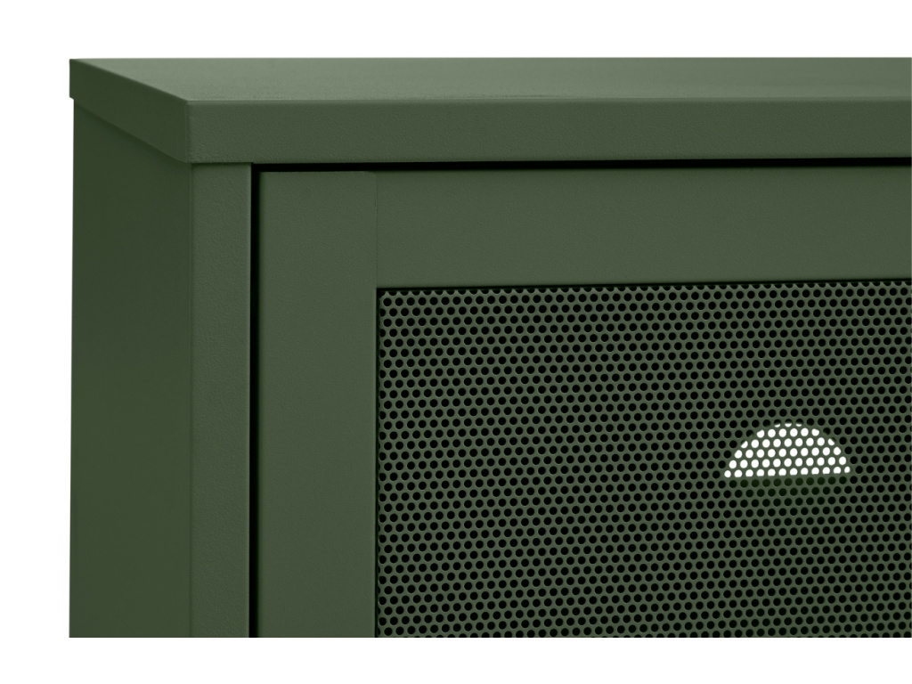 Komoda Veep od značky Unique Furniture ukazuje krásu a sílu ve svém celokovovém provedení. Unikátním prvkem jsou perforovaná dvířka, která dodávají stolku jedinečný charakter a zvýrazňují jeho moderní vzhled. Díky promyšlenému designu nabízí komoda dostatek úložného prostoru pro vaše knihy, dekorace a další potřebné věci. Skvěle se hodí nejen do obývacího pokoje, ale také do ložnice. Pro dokonalou harmonii v interiéru můžete komodu zkombinovat s ostatními produkty z kolekce Veep. Na výběr máte ze tří barevných variant – černá, šedá a olivově zelená – takže si snadno vyberete tu, která nejlépe ladí s vaším stylem.