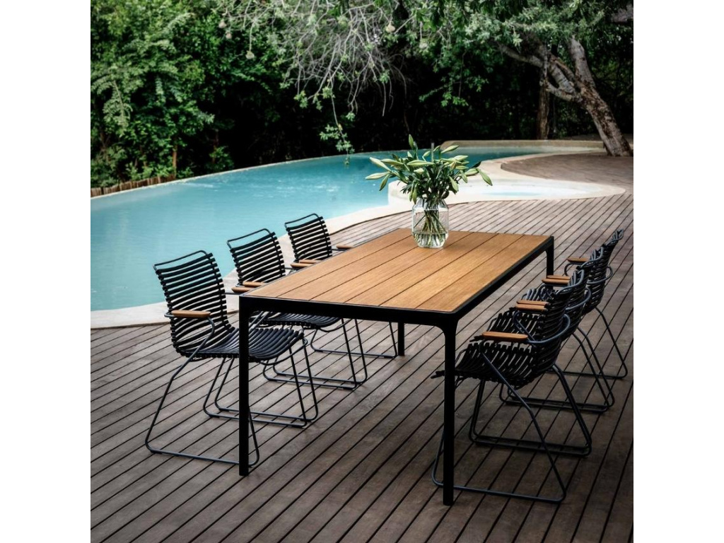 Zahradní židle HOUE Click II. zaujme svým moderním vzhledem. Židle Click klade důraz na moderní severský styl, díky čemuž zaujme na první pohled. Pohodlný sedák z plastových lamel, kovová podnož a praktické bambusové područky společně tvoří unikátní kousek nábytku, který vás osloví. Díky prodloužené délce zádové opěrky nabízí židle ještě větší míru pohodlí. Moderní design a osobitý výraz zdůrazňují celkovou podstatu židle. Židle je vhodná do exteriérového prostředí.