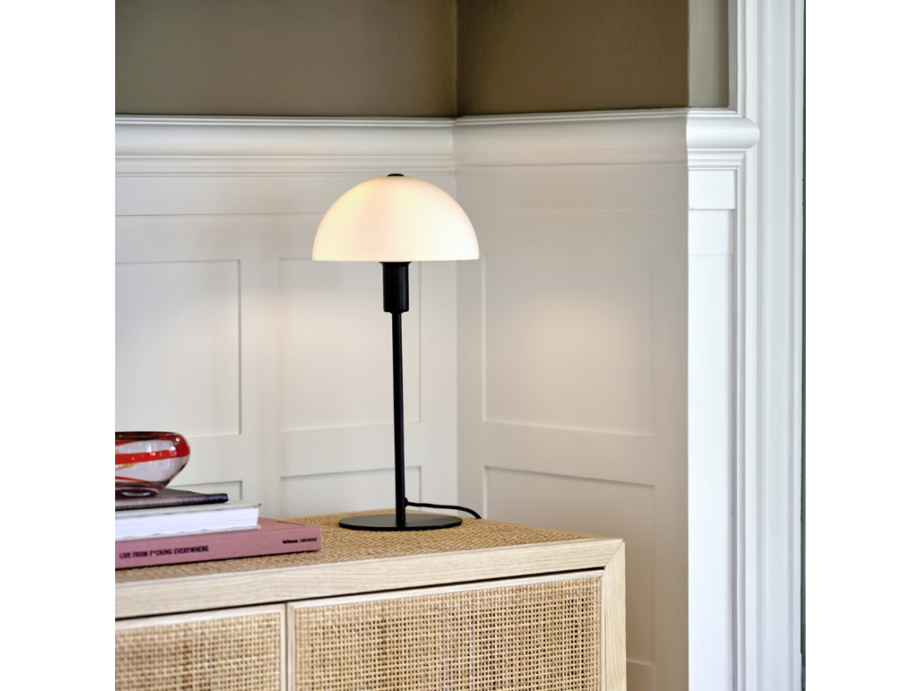 Podívám seOpálově bílá skleněná stolní lampa Ellen s černou podstavou