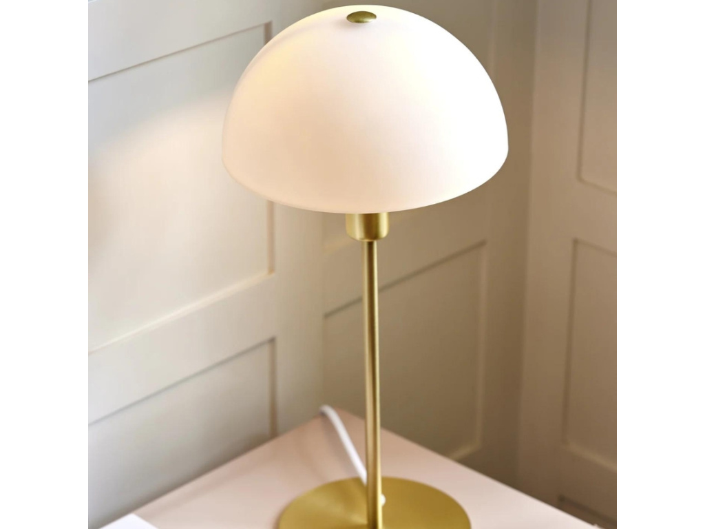 Podívám seOpálově bílá skleněná stolní lampa Ellen s mosaznou podstavou