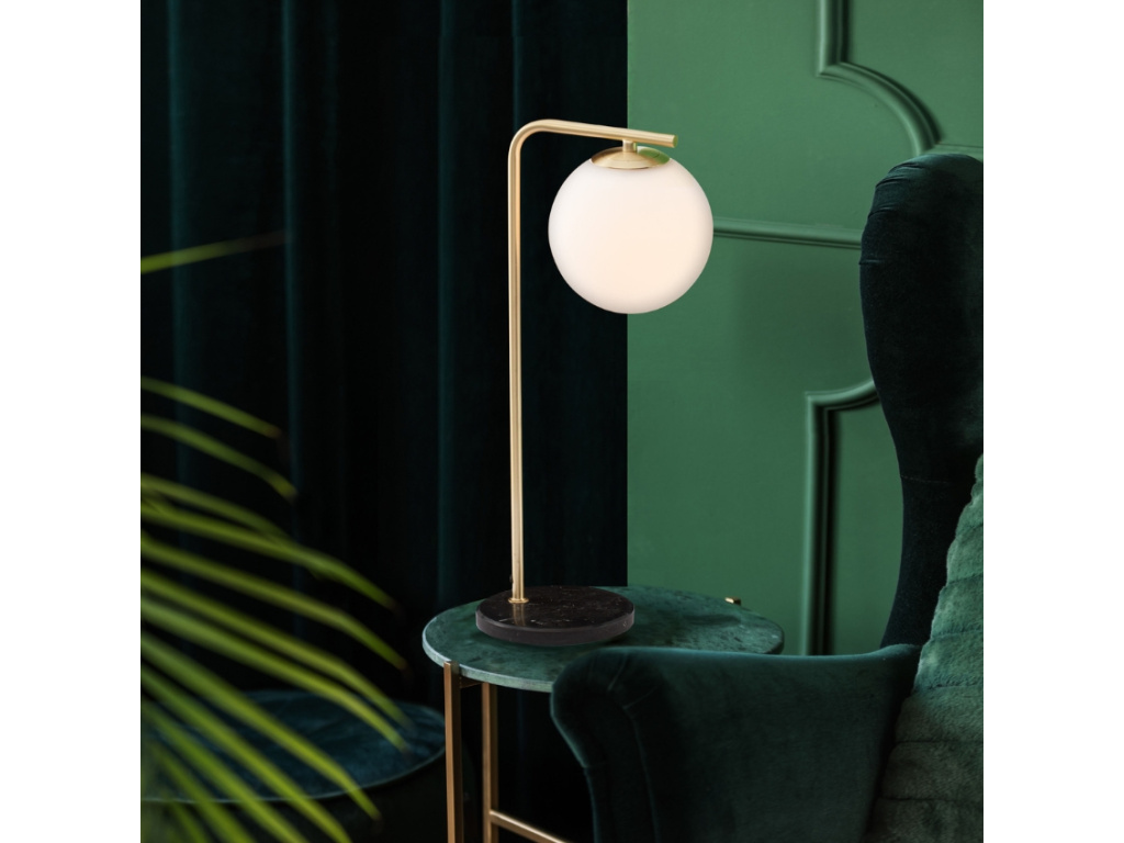 Neotřelou eleganci a sofistikovaný design vám do interiéru přinese stolní lampa Alvarez od Nova Luce. Lampa se pyšní stínidlem z bílého opálového skla, které vytváří příjemné měkké osvětlení a v jakékoliv místnosti pomůže navodit útulnou atmosféru. Se stínidlem dokonale kontrastuje zlatá kovová podstava a černá mramorová základna. Tyto tři luxusní materiály spolu vytváří nadčasový design. Lampě to bude slušet na nočním stolku či na oblíbené komodě v moderním, glamour i vintage interiéru.