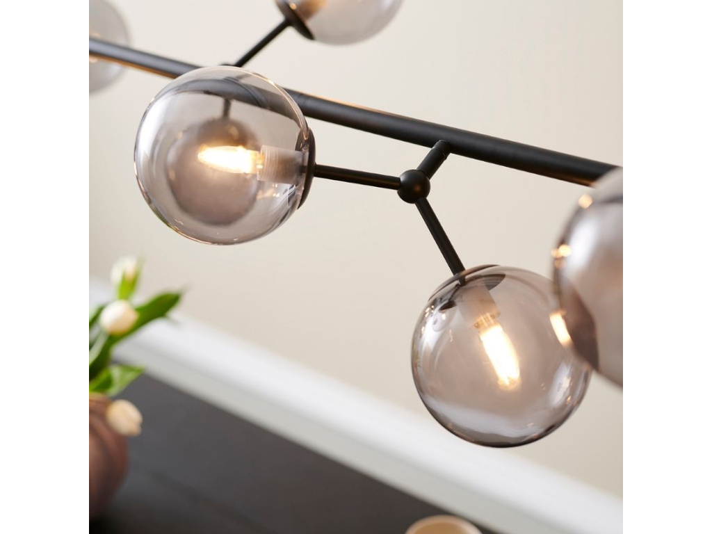 Elegantní horizontální závěsné světlo Atom značky Halo Design na první pohled zaujme svým jedinečným designem. Světlo se skládá z dlouhé kovové konstrukce, na které najdete celkem šest stínidel. Opálově bílá skleněná stínidla jsou umístěna na třech kovových ramenech, která jsou pohyblivá. Díky nim lze světlo upravit přesně podle vašich představ a osvětlení tak získá na výjimečnosti a originalitě. Světlo Atom je k dispozici v několika barevných variantách, díky čemuž se snadno přizpůsobí každému interiéru. Skvěle vynikne v moderních interiérech komerčních i nekomerčních prostor.