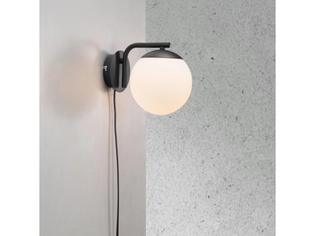 Více infoOpálově bílé skleněné nástěnné světlo Grant s černým zavěšením